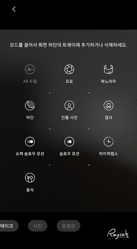 보급형 이지만 기본 카메라 기능은 플래그십 단말기와 비슷하게 기능을 지원하고 있는데 수동 모드인 프로 모드 그리고 하이퍼 랩스 기능, 접사 촬영시 접사 메뉴를 선택해야 하며 동영상 슬로우 모션및 슈퍼 슬로우 모션까지 지원하고 있습니다.