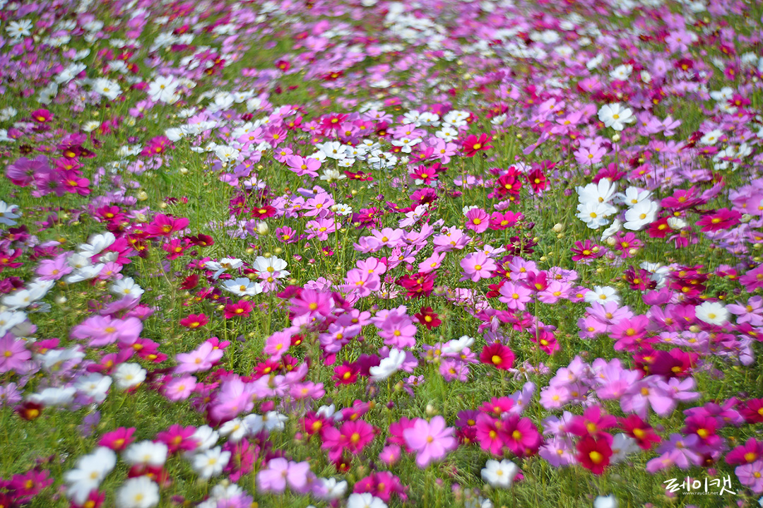 사진을 촬영할때 아웃포커스는 지저분한 배경도 정리하고 뒤쪽에 더 많은 꽃이 줄지어 피어 있으면 좀 더 화사한 느낌의 배경이 됩니다. 주의할 사항은 조리개를 적절히 조절해야 하며 피사체와 거리 역시 적절히 조절해서 보여주는 것이 좋습니다.