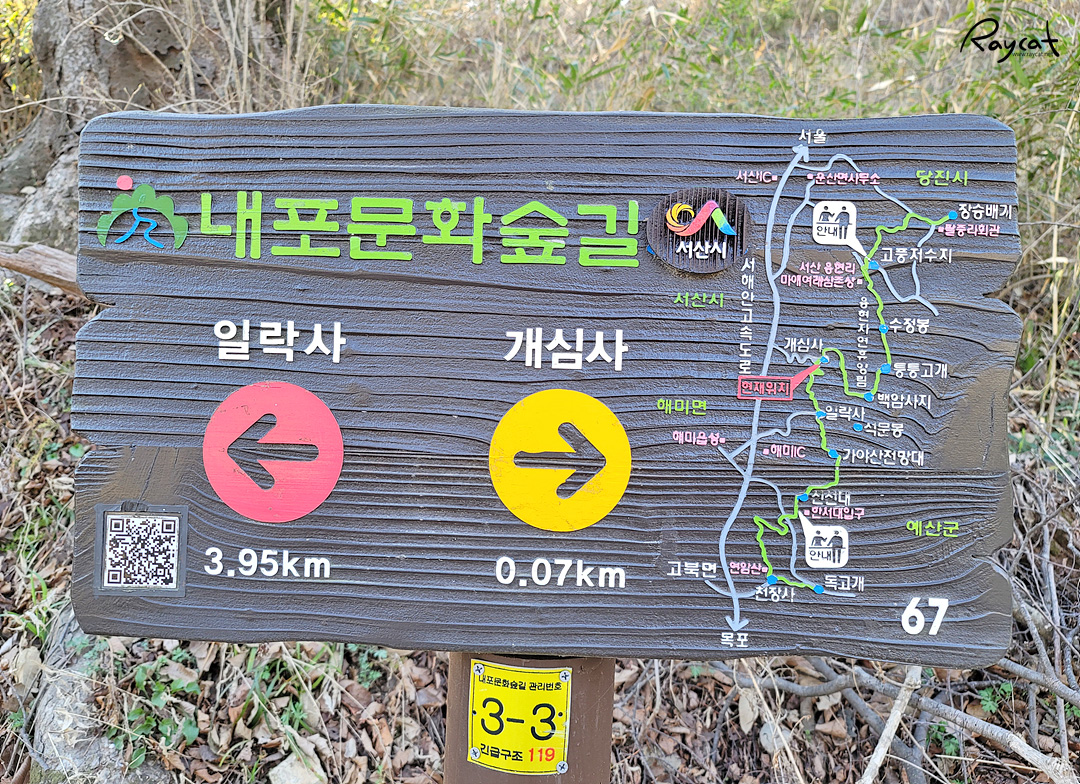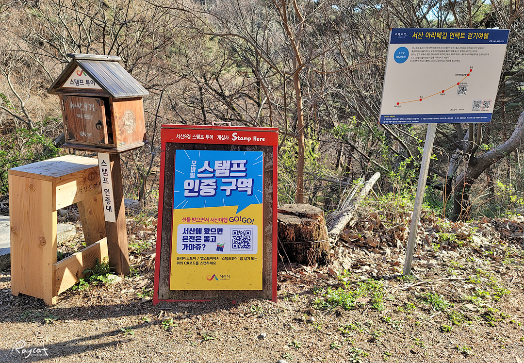 아라메길 2구간의 스탬프 인증은 개심사 들어가기 전 고갯길에 있습니다.