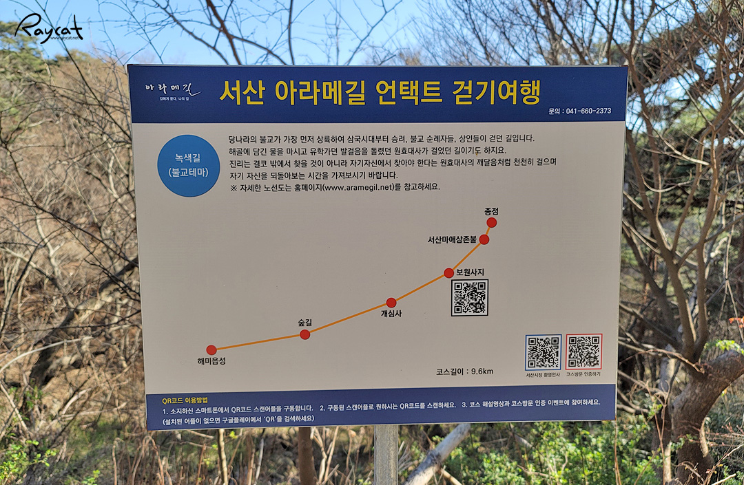 대략 3시간 정도의 코스길인데 녹색길 (아라메길 2코스&코리아 둘레길 64-2) 해미읍성에서 출발해서 총 9.6km인데 4km 정도 그러니까 반 정도 걷고 다시 해미읍성으로 돌아오는 코스를 선택했습니다.