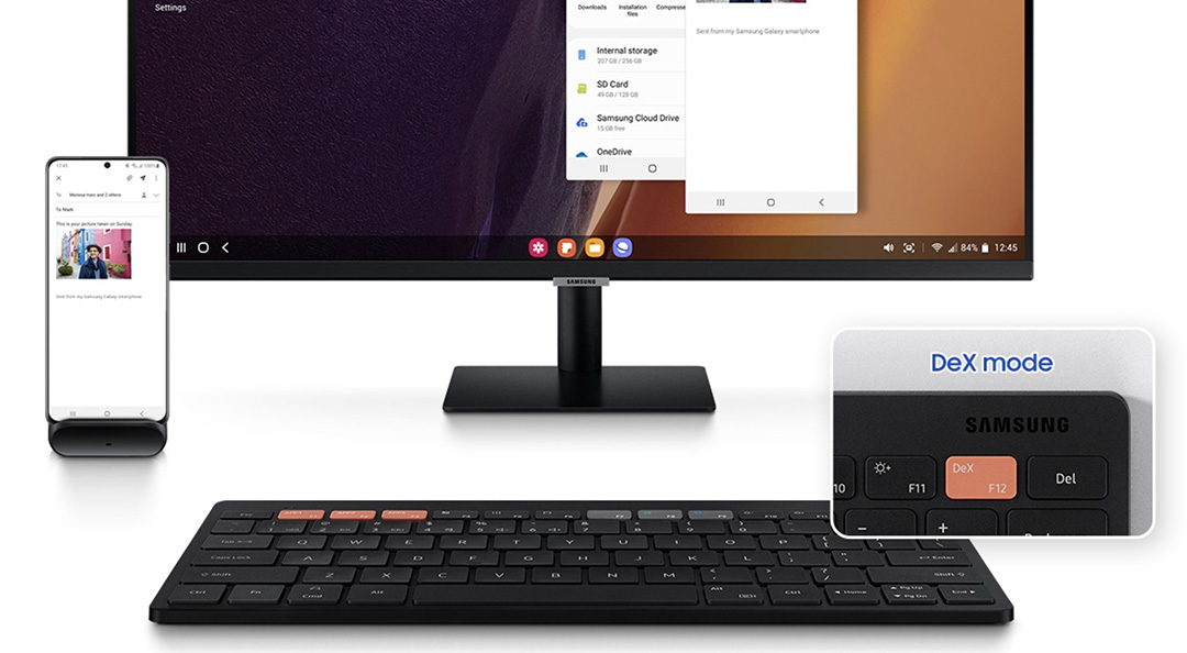 멀티 디바이스를 지원하는 키보드이며 DEX 바로가기 키가 있습니다. 얼핏보면 디자인은 로지텍 블루투스 키보드 K380을 닮은 디자인과 느낌을 줍니다.