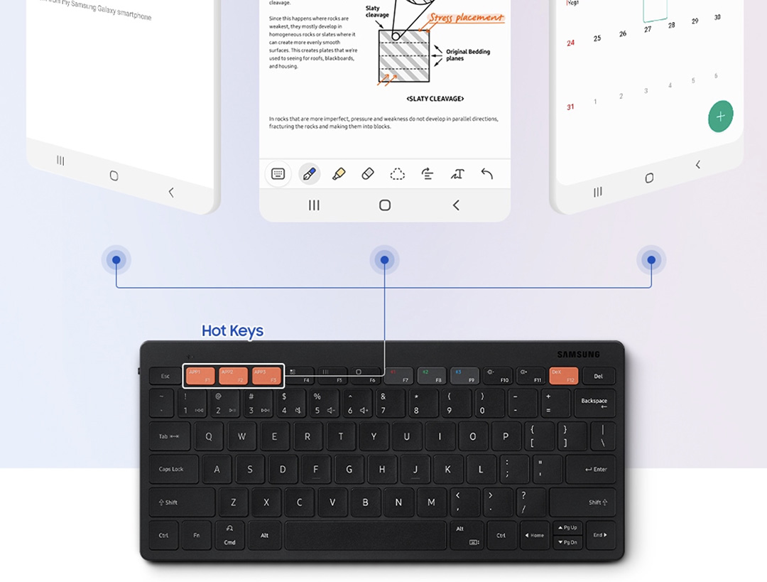참고로 스마트 키보드 트리오 500의 핫키 기능은 One UI 3.1을 실행하는 Samsung Galaxy 휴대폰 및 태블릿에서 사용할 수 있습니다. 기능 설명을 보면 핫키 기능은 갤럭시 시리즈에서만 사용할 수 있도록 되어 있습니다.