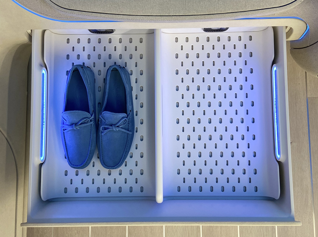 지난해에 현대자동차와 함께 미래차의 인테리어 비전을 제시한 ‘아이오닉 콘셉트 캐빈(IONIQ Concept Cabin)’을 통해 차량용 신발관리 솔루션을 선보인적이 있습니다.