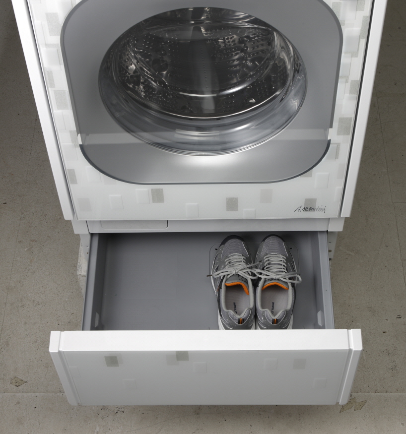 위 사진은 2008년 LG전자가 선보였던 드럼 세탁기 아래쪽에 서랍형 신발관리기를 결합해 선보였던 제품입니다.