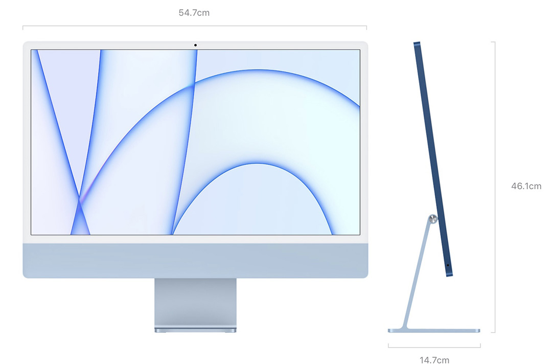 GPU, RAM까지 모두 M1 칩에 탑재해 모두 온보드 형태로 제작되어 11.5mm의 얇은 두께로 기존의 27인치 아이맥처럼 램을 확장하지는 못하지만 아주 얇아졌으며 24인치 디스플레이를 탑재한 모델 하나만 나옵니다.