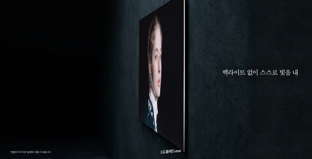 반면, LG 올레드 TV는 백라이트 없이 소자 하나하나가 자발광을 하기 때문에 정확한 블랙 표현이 가능해 무한대에 가까운 명암비를 가지고 있고, 명암비가 높은 만큼 색 재현율도 우수하여 위 광고의 이미지처럼 선명하고 자연스러운 컬러를 생생하게 전달하고 있습니다.