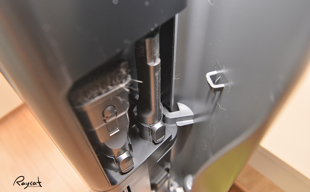 그리고 양쪽에 파워 드라이브나 물걸레를 걸 수 있는 고리가 있습니다. 사용 안 할 경우 손가락으로 밀면 안쪽으로 들어가 안 보이게 됩니다.