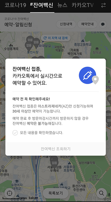어머님은 이미 2차 접종까지 완료한 상태인데 별다른 이상도 없으시고 백신 맞고 아무 증세도 없었기 때문에 저도 뭐 비슷할거라 생각이 들어서 현재 접종 대상은 아직 아니지만 미리 맞아 두는게 돌아다닐때 더 안심이 될 것 같아서 노쇼 백신이나 잔여백신을 맞아 볼려고 카카오톡으로 알림 신청을 접수 했습니다.