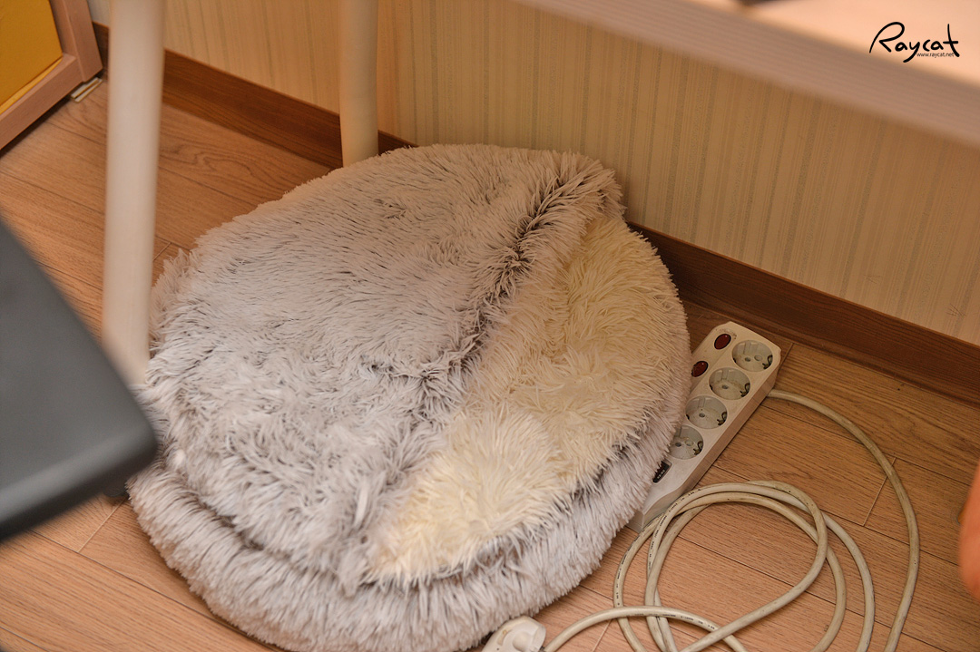 혹시나 의자에서 비켜날까 싶어서 고양이 쿠션을 의자 바로 밑에 놔뒀는데 지금도 여전히 고양이는 의자만 고집하고 있다. 결국 이번 영역 싸움에서 내가 졌다.