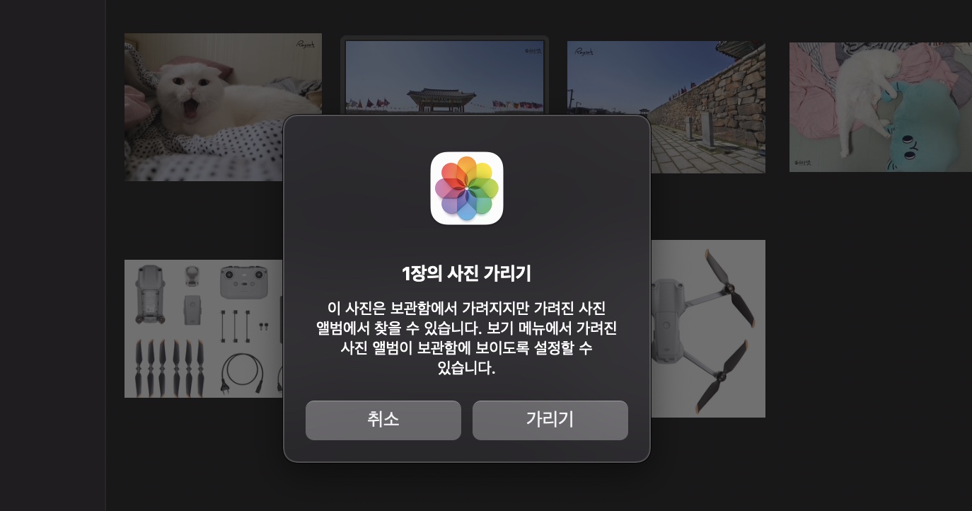 맥에서 사진 가리기.