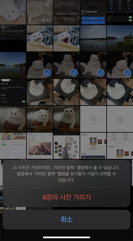그리고 iCloud 사진을 사용하는 경우 한 기기에서 가린 사진은 다른 기기에서도 가려집니다. iCloud 사진 보관함을 사용하고 있다면 하나의 기기에서 가려진 사진은 다른 기기에서도 모두 숨기기가 되니 참고하세요.