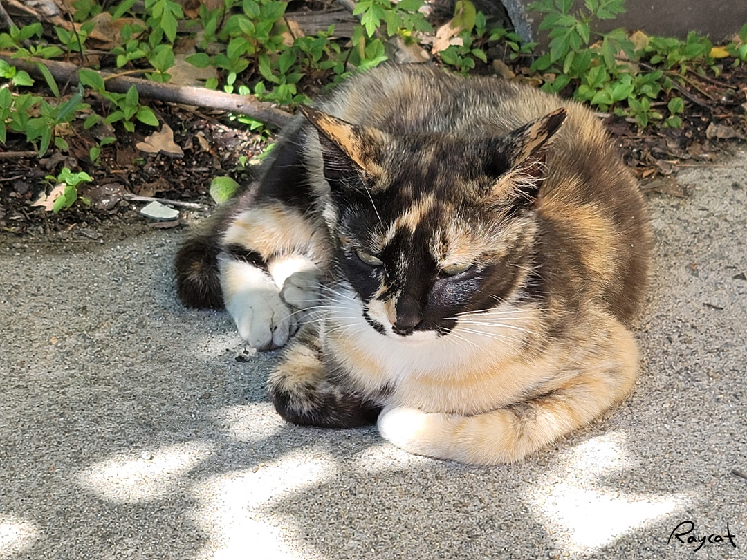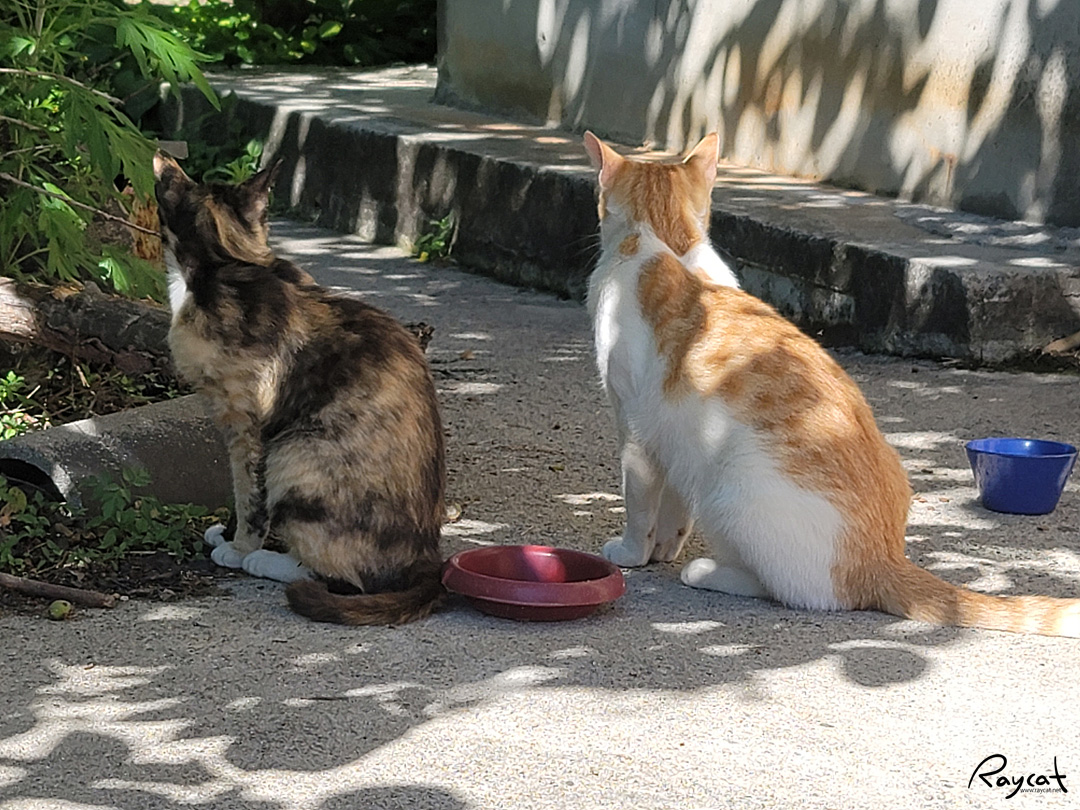 왼쪽에 삼색이는 작년에 애기 고양이였는데 이제는 어미가 돼서 지금은 완전히 성묘다. 겨울이 지나고 봄에는 안 보이다가 여름이 시작하니 다시 돌아왔다.