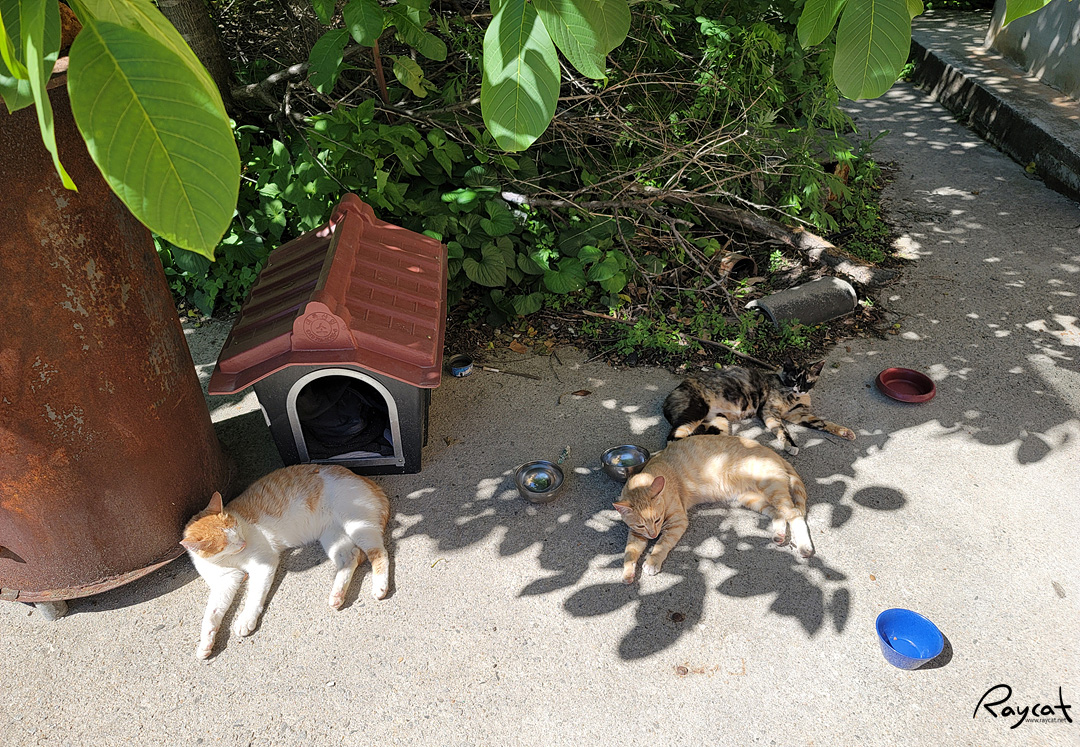 요즘 날씨가 따뜻하다 보니 고양이들이 햇빛 드는 곳에 널부러져 있는 모습을 볼 수 있다. 여기 고양이들은 원래 사람에 대해 경계심이 약해서 아는 사람을 보면 별로 신경 쓰지 않는다.
