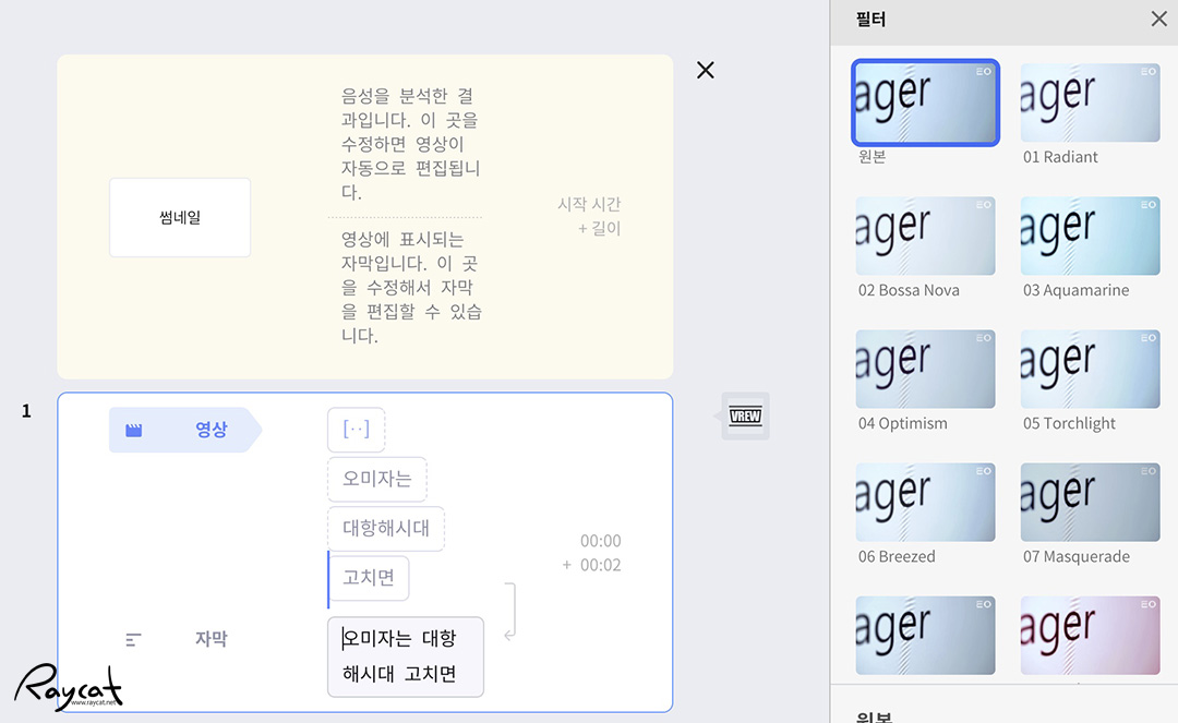 자막도 다양한 폰트를 지정할 수 있으며 자막에 필터를 적용해 영상에 바로 삽입도 가능하며 사용자가 쉽게 쉽게 클릭만 해보면 사용할 수 있도록 되어 있어서 초보나 고급 사용자도 활용하기 좋은 에디터이기도 합니다.
