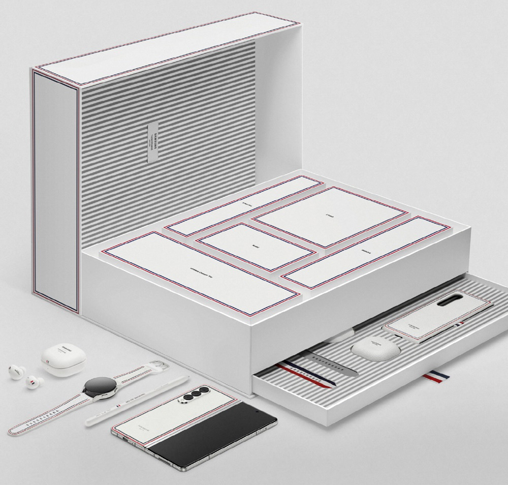 갤럭시 Z 폴드3 톰브라운 에디션 패키지에는 갤럭시 워치4, S펜 프로, 톰브라운 스트랩, 갤럭시 버즈2 톰브라운 에디션, 무선 충전 트리오가 포함되어 있습니다.