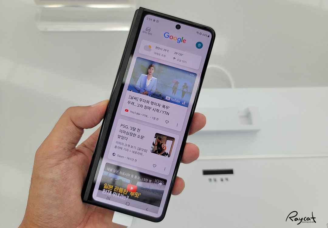 펼쳤을 때 태블릿처럼 접었을 때 일반 바 형태의 스마트폰처럼 사용할 수 있다는 점이 갤럭시 폴드 시리즈의 가장 큰 장점이기도 합니다.