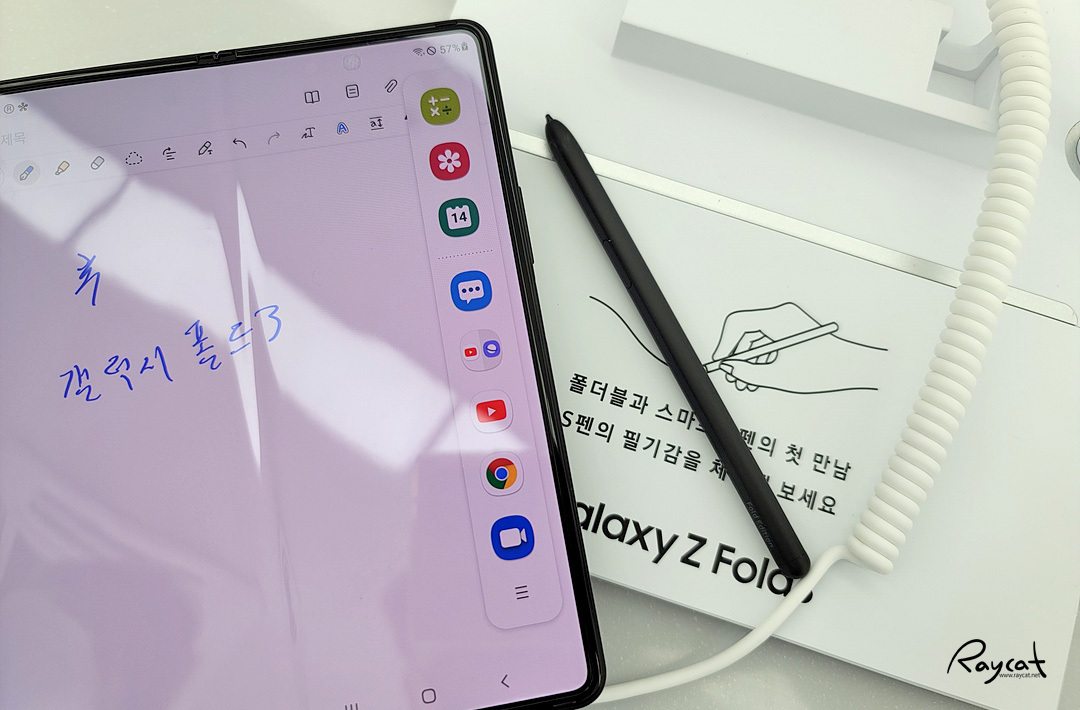 갤럭시 Z 폴등3에 S펜을 지원하므로 생산성이 올라가고 좀 더 활용도가 높아진 셈인데 노트 시리즈에서 펜을 원래 사용하던 사람은 조금 익숙해지면 좀 더 편하게 사용할 수 있을 것 같은 펜이기도 합니다.
