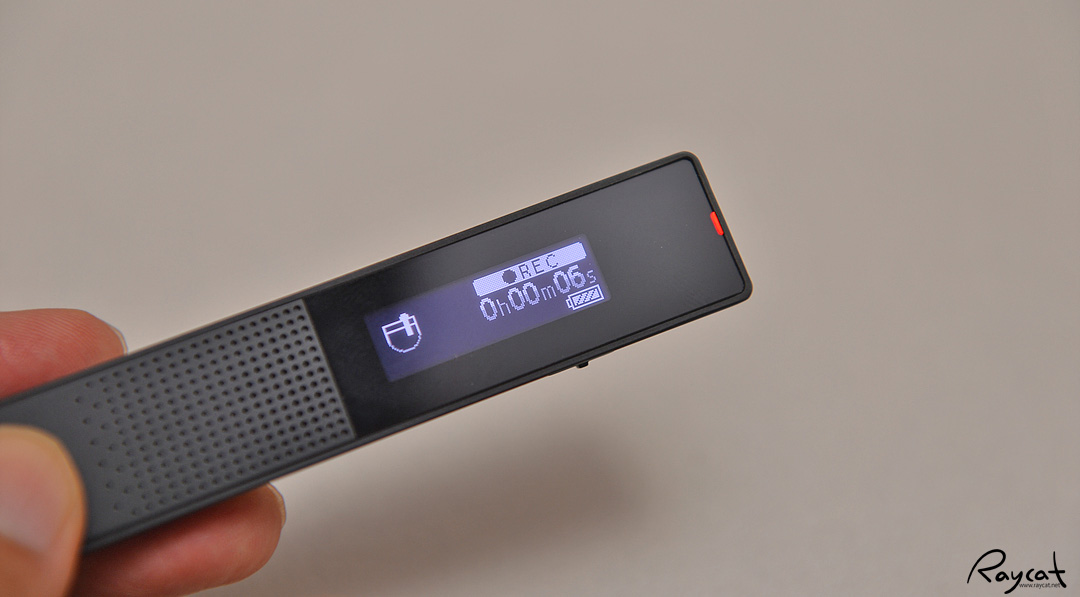 녹음 상태를 보여주는 디스플레이는 간결하게 딱 보여줄 정보만 보여줍니다. 녹음 시에는 저렇게 상단부에 저렇게 붉은색 led가 들어옵니다.