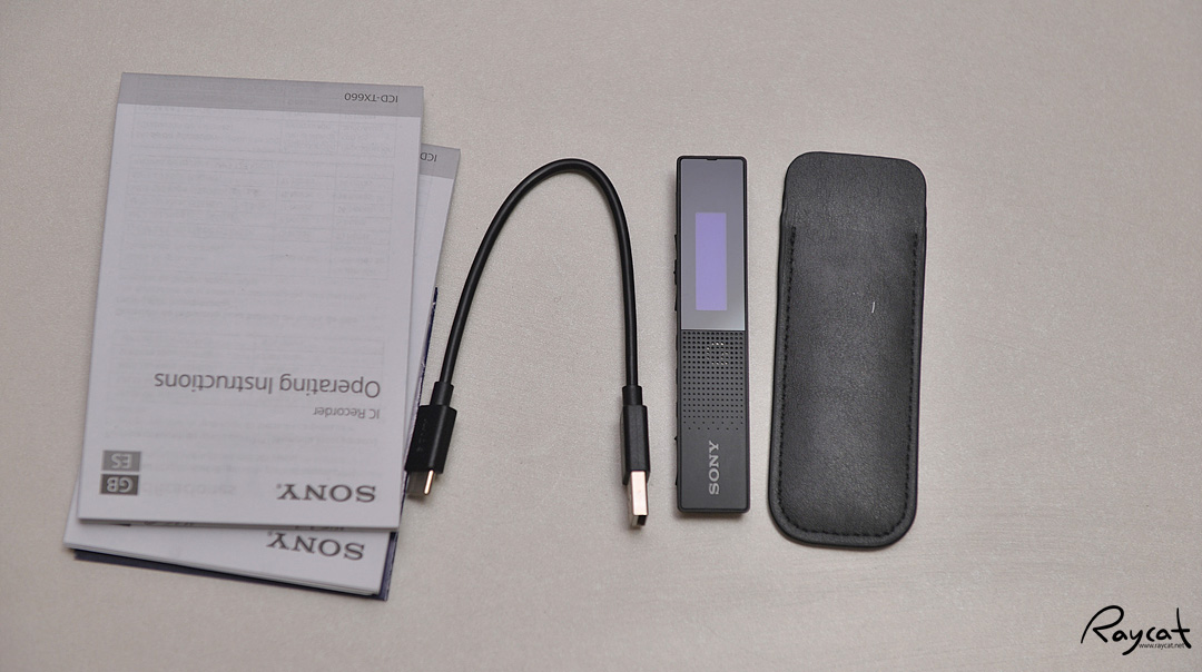 기본 구성품으로 제공되는 가죽 파우치에 보이스 레코더를 넣으면 완전히 쏙 들어가서 보이지 않습니다. 이전 모델인 TX650은 유튜버들 사이에서도 꽤 인기가 있었던 모델인데 이번 TX660도 외형은 큰 변화는 없는 듯합니다.