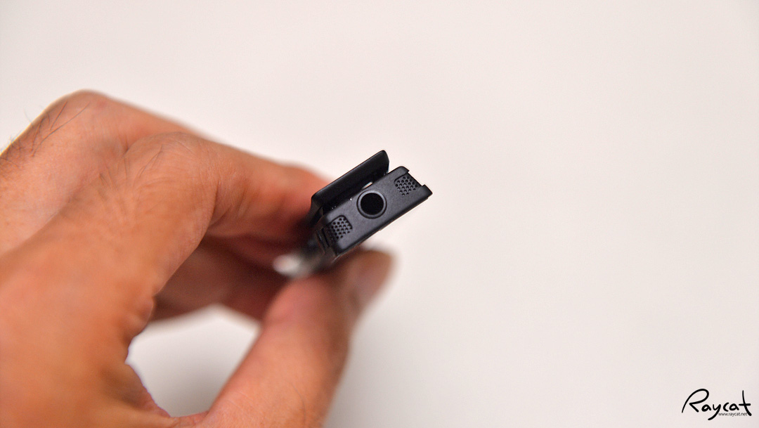 클립 위쪽에 3.5mm 오디오 잭이 있으며 마이크는 위쪽과 아래쪽 2개의 스테레오 마이크가 있습니다.