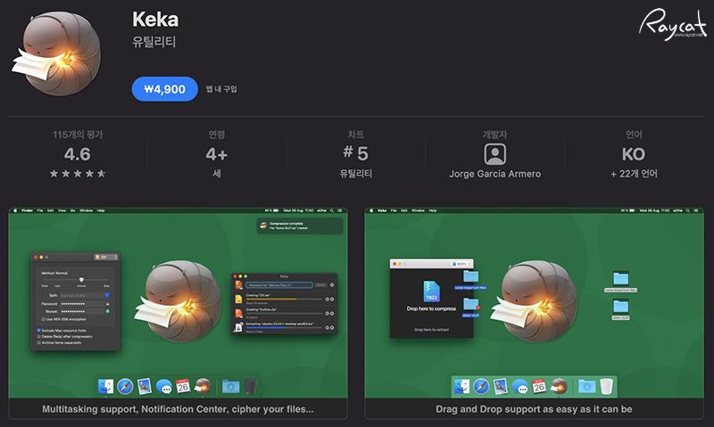 그리고 keka의 경우 맥앱스토어에서 유료지만 개발사 홈페이지에서 다운로드하면 무료로 사용할 수 있습니다.