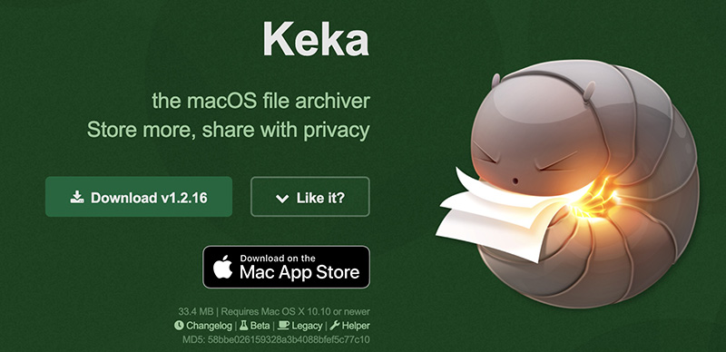 keka는 맥앱스토어가 아닌 개발자 홈페이지에서 DMG 파일을 다운로드해 설치할 수 있기 때문에 무료로 사용할 수 있습니다.