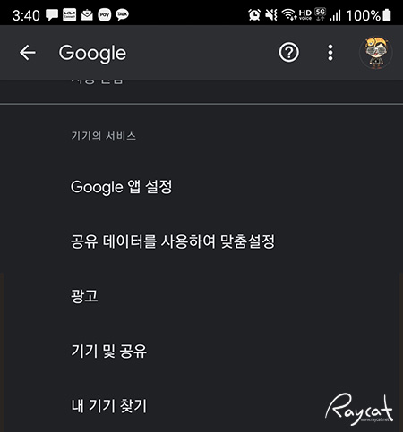 설정 -> Google 서비스 선택하면 Google 앱 설정 항목이 있습니다.