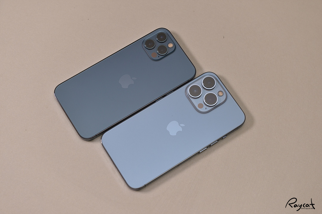 아래 사진을 보면 아이폰 12 프로와 아이폰 13 프로를 같이 두고 비교한 사진으로 확실히 차이를 느낄 수 있습니다.