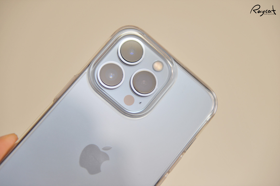 링케 케이스의 경우 측면은 모두 말랑말랑한 소재로 되어 있는데 모서리에 에어홀에 있어서 낙하 시 모서리의 충격을 완화해 주는 역할을 합니다. 그리고 이번에 아이폰 13 시리즈의 경우 카메라 센서가 크지면서 카툭튀가 이단으로 되어 있어서 카메라가 실제 아이폰 12와 비교하면 좀 더 올라와 있습니다.