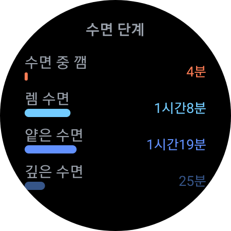 수면시간 측정의 경우 갤럭시 워치4를 손목에 차고 자야 하는 부담감이 있는데 아마 취침 중 시계를 차고 못 주무시는 분들은 측정하기 어려울 수 있습니다.