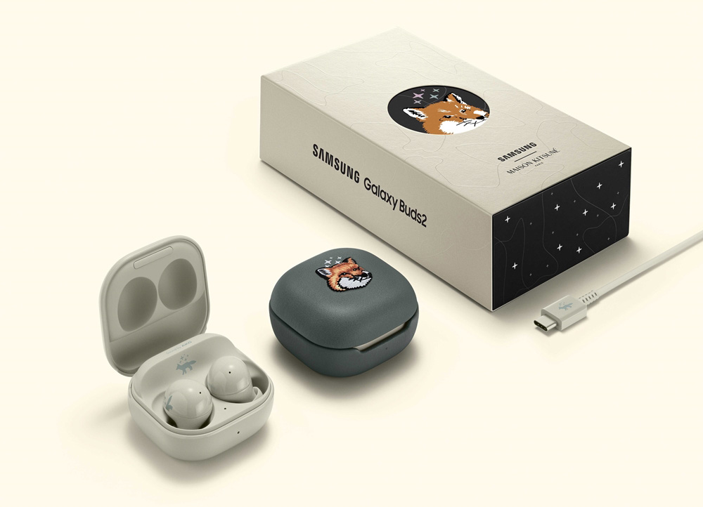 갤럭시 버즈2 메종키츠네 에디션’은 29만원이며 이번 갤럭시 버즈2 메종키츠네 에디션은 문락 베이지 색상의 이어버드와 메종키츠네 폭스 헤드 로고가 새겨진 스타더스트 그레이 색상의 가죽 충전 케이스로 구성되어 있습니다.