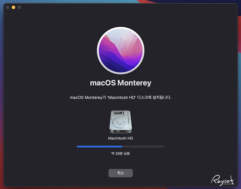 시스템 환경설정 -> 소프트웨어 업데이트 메뉴로 들어가면 바로 맥 OS 몬테레이가 설치 가능하며 설치에 소요되는 시간은 대략 한 시간 정도로 예상하면 됩니다. 2019년 이후 출시된 맥이면 설치는 깔끔하게 잘 되기 때문에 크게 설치 순서대로 클릭만 하면 됩니다.