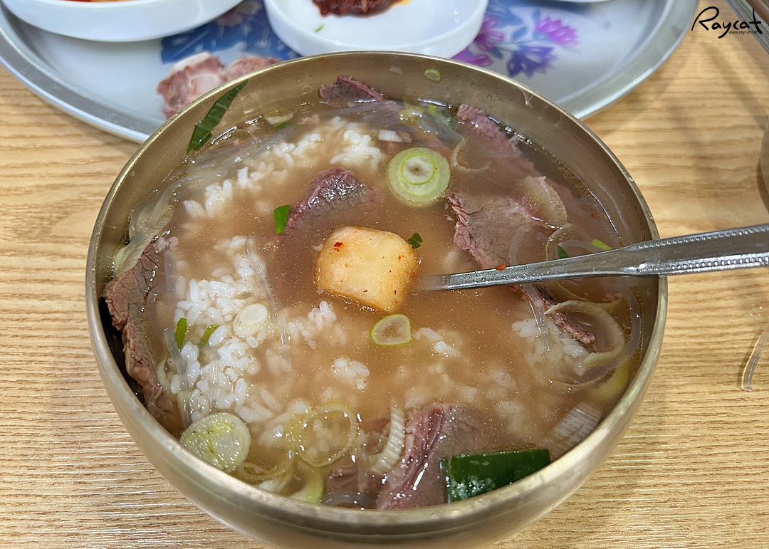 어느 정도 고기를 먹고 나면 밥을 말아먹는데 한 공기 다말면 부담스럽고 밥은 반 정도 말아먹는다. 고기를 많이 먹고 싶을 때 와서 먹으면 정말 괜찮은 갈비탕인데 수요일은 갈비탕, 화요일은 선지해장국이다.