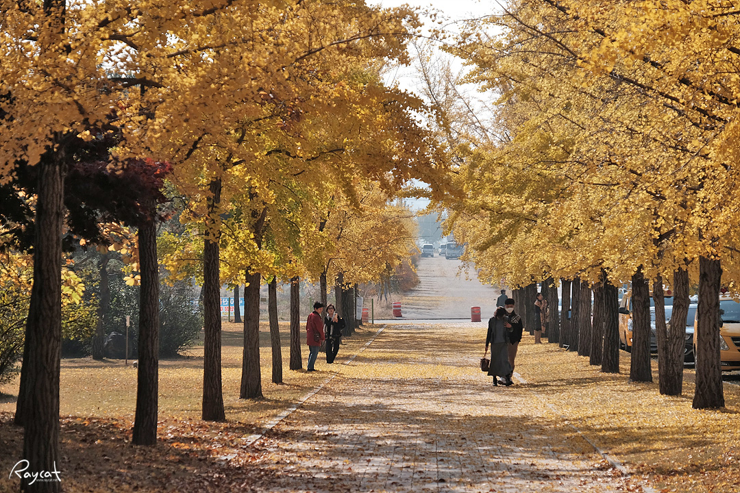 현충사는 입구로 들어서기전 주차장 가는 길부터 은행잎이 노랗게 물들어 한참이라고 이야기할 수 있습니다. 비 때문에 많이 떨어진 곳도 있지만 은행나무는 예전보다 조금 늦게 노란 바닥 길을 만들고 있습니다.