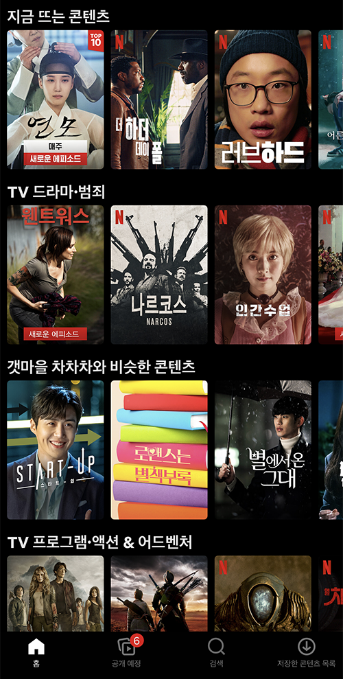 콘텐츠를 보면 디즈니플러스에 비해 넷플릭스는 종류는 더 많지만 가끔 볼거리가 없는 느낌도 있어 좀 아쉬운데 디즈니플러스에 대비 성인용 콘텐츠는 넷플릭스가 더 많은 듯합니다.