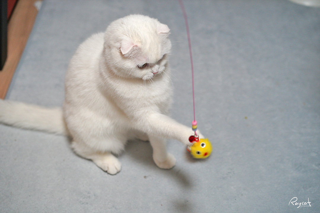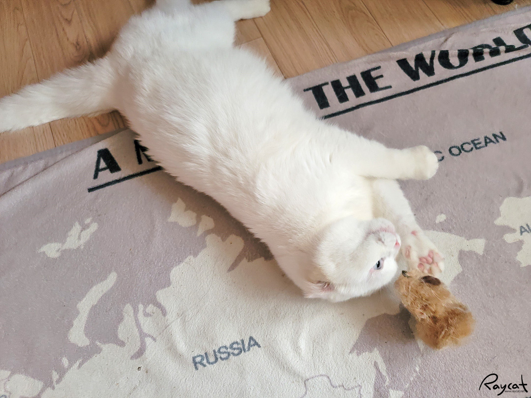 특히 겨울이면 일월은 여름보다 식사량이 좀 더 늘어나고 늘 체중도 늘어나서 장난감으로 조금 더 자주 놀아준다.