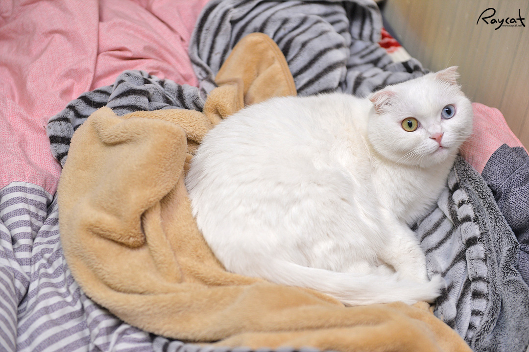 애기 때부터 사용하던 고양이 담요를 깔아주면 늘 그위에서 잠을 자는 게 습관이 들여지기 때문에 이불에 고양이 털이 붙는 것도 좀 덜하다.