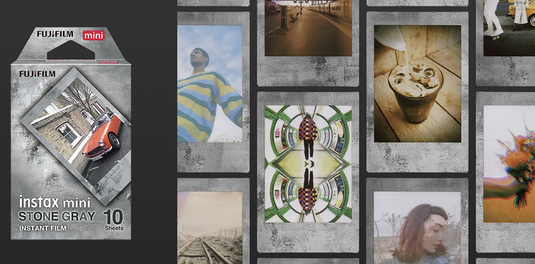 카메라와 함께 공개된 미니 포맷 필름 '스톤 그레이'는 그레이 프레임에 메탈릭 실버로 포인트를 주고 있습니다. 새로운 미니 필름도 함께 공개했는데 카메라에 어울리는 그레이 컬러의 프레임을 사용하고 있습니다.