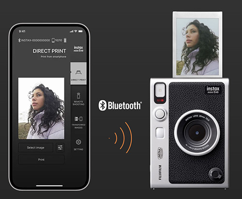 하이브리드 즉석카메라인 인스탁스 미니 에보는 카메라 후면 패널의 LCD 모니터를 통해 장치에서 캡처한 사진을 검토하고 인쇄할 이미지를 선택할 수 있으며 스마트폰 앱과 연동해 다양한 촬영 효과를 조합해 바로 출력할 수 있습니다.