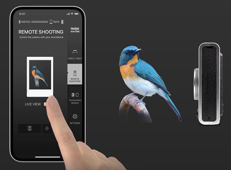 하이브리드 즉석카메라인 인스탁스 미니 에보는 카메라 후면 패널의 LCD 모니터를 통해 장치에서 캡처한 사진을 검토하고 인쇄할 이미지를 선택할 수 있으며 스마트폰 앱과 연동해 다양한 촬영 효과를 조합해 바로 출력할 수 있습니다.