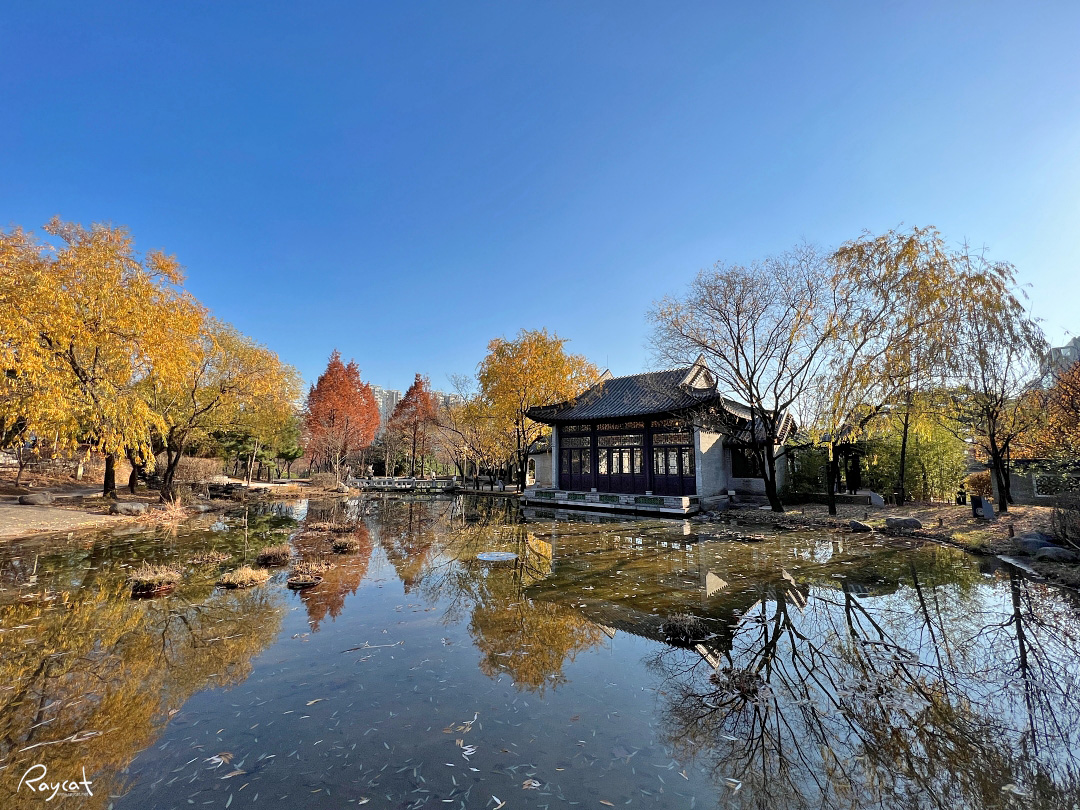 벽의 문양이나 천정의 달려있는 등까지 우리 전통 가옥에서 볼 수 없는 문양과 등으로 최대한 중국 전통 건축의 형식을 빌려와 만들어진 곳이라 공원을 산책하며 잠깐 들어와 다른 기분을 느끼기 괜찮은 곳이기도 하다.