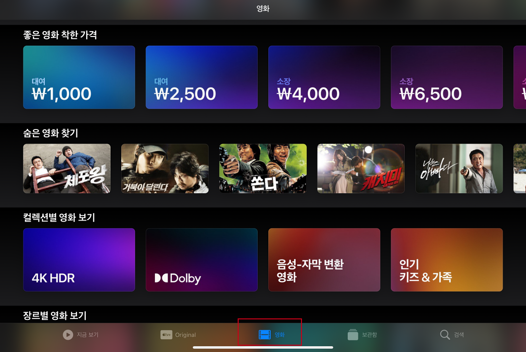 애플TV+ 구독자는 애플 오리지널 서비스는 무료지만 애플TV 앱에서는 애플TV+ 콘텐츠뿐만 아니라 다양한 국내외 최신 개봉 영화를 다루고 있는데 이 서비스들은 무료가 아닌 영상에 따라 별개의 비용을 지불해 감상할 수 있습니다.