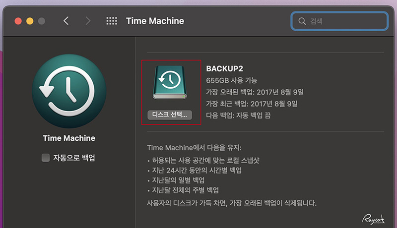 맥 타임머신 백업은 디스크 용량이 꽉 차면 가장 먼저 백업된것 부터 삭제하게 됩니다.