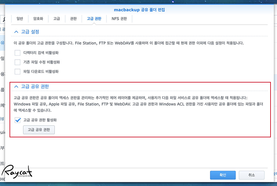 공유 폴더 편집에 보면 고급 권한이 있는데 설명을 읽어보면 아시겠지만 '고급 공유 권한 활성화'에 체크합니다.