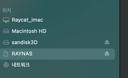 공유폴더를 macbackup으로 만들었는데 파인더에서 추가하면 맥의 바탕화면에 저렇게 공유 폴더 디스크가 생성됩니다.