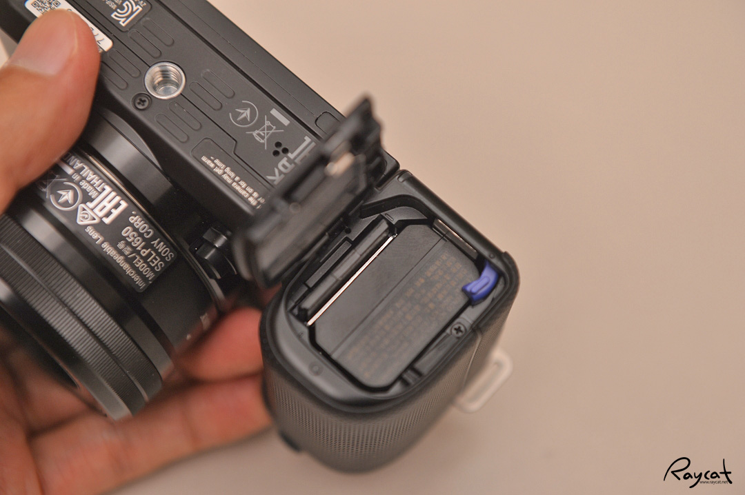 아래쪽에 배터리와 함께 메모리 카드 슬롯이 있습니다.