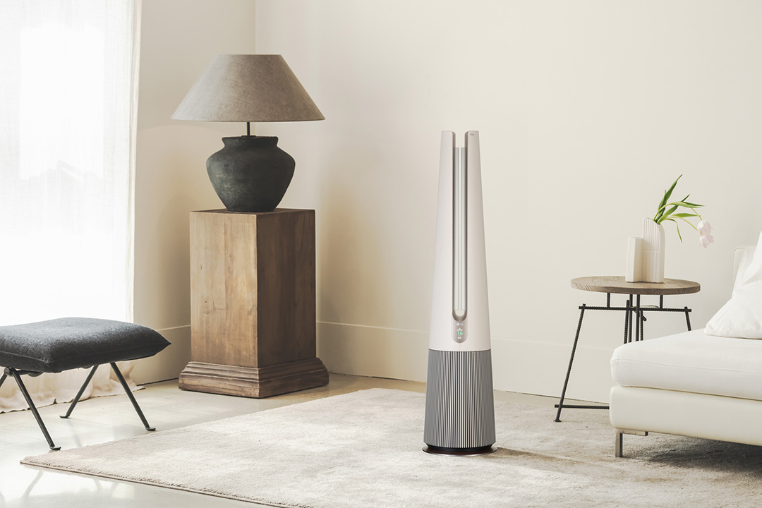 디자인을 보면 아래쪽은 퓨리케어 공기청정기이 원통형 디자인에 위쪽은 송온풍 기능을 위한 2개의 타워로 나눠져 있습니다.