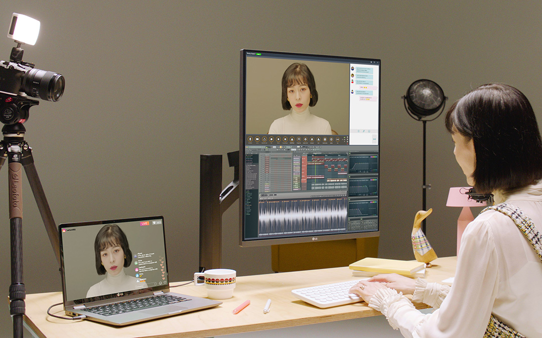 모니터에 노트북과 함께 데스크탑을 연결해 사용하면서 영상 편집이나 이미지 편집 등을 하며 에디터 툴을 많이 띄워서 사용하는 애플리케이션을 활용할 때 더 편리하게 사용할 수 있을 것 같습니다.