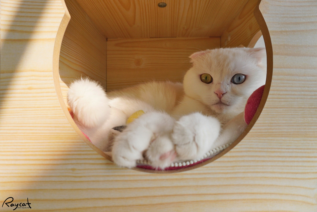 고양이는 주로 낮시간은 캣타워에서 많은 시간을 보낸다.