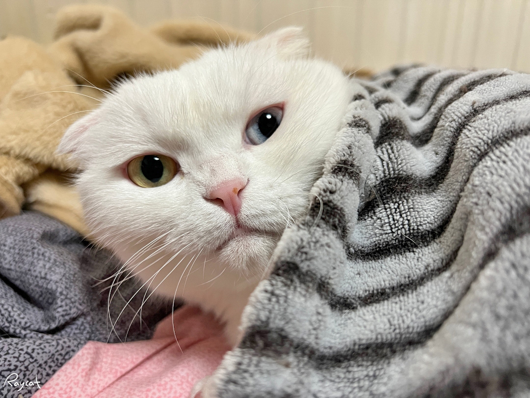 사실 전기매트를 꺼버려서 고양이가 담요를 몸에 말아서 자고 있다.